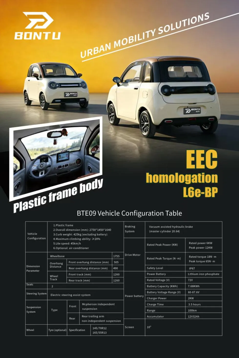 Er wordt een nieuwe BONTU BTE 09 MINI-personenauto op de markt gebracht